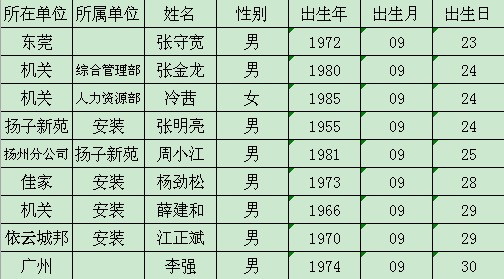 祝賀9月過生日的員工生日快樂