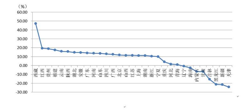 從各地區(qū)建筑業(yè)總產(chǎn)值增長情況看,有23個(gè)地區(qū)的建筑業(yè)總產(chǎn)值較上年同期有不同幅度的增長。其中,西藏、江西、貴州、福建、云南、陜西的增幅均超過15%。有8個(gè)地區(qū)出現(xiàn)負(fù)增長,其中,天津、新疆、黑龍江、吉林出現(xiàn)了15%以上的負(fù)增長。