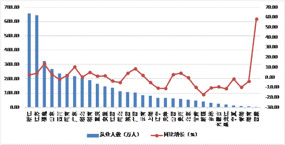 圖5 2018年上半年各地區(qū)建筑業(yè)從業(yè)人數(shù)及增速
