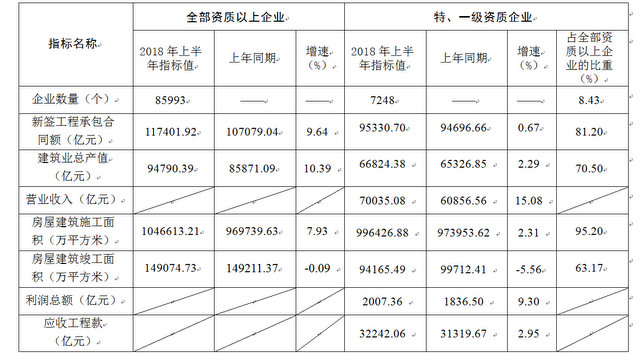 中國建筑業(yè)協(xié)會(huì)于9月14日發(fā)布《2018年上半年建筑業(yè)發(fā)展統(tǒng)計(jì)分析》。