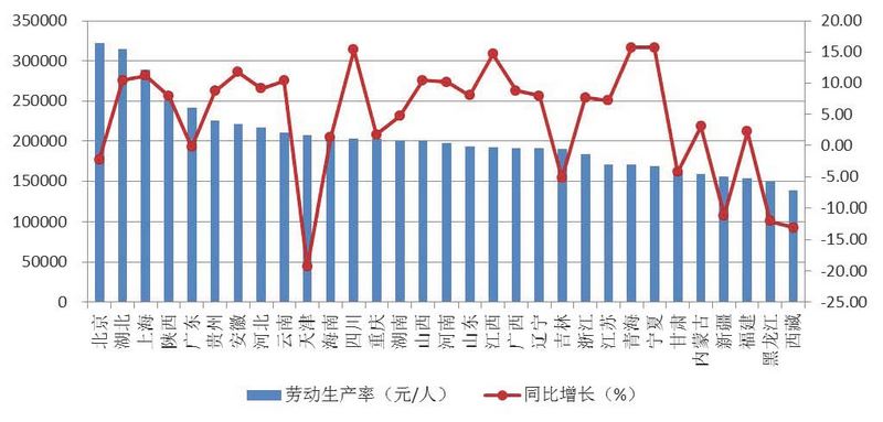 圖6 2018年上半年各地區(qū)按建筑業(yè)總產(chǎn)值計(jì)算的勞動(dòng)生產(chǎn)率及增速